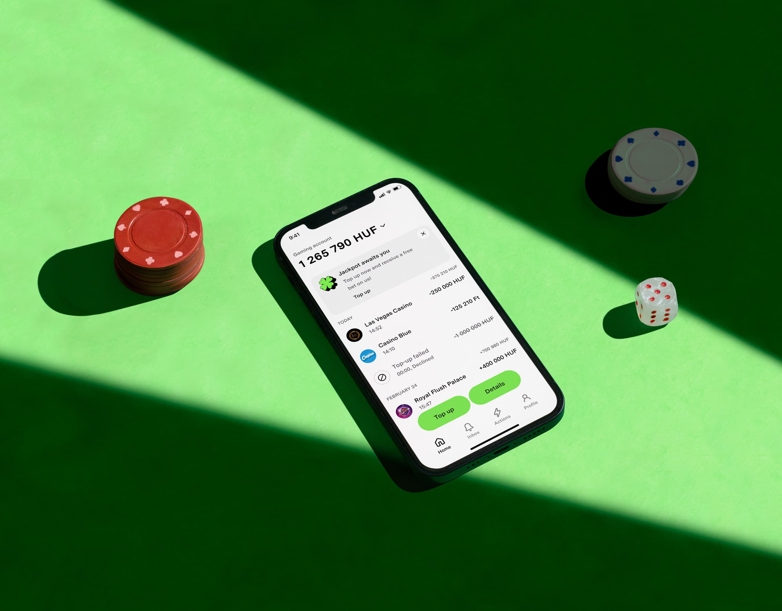 On the product side, we worked closely with Playcard’s team to map a user journey focused on clarity and efficiency — ensuring core actions are completed with minimal steps and maximum transparency. The interface leans on functional typography, purposeful layouts, and measured use of the signature green.